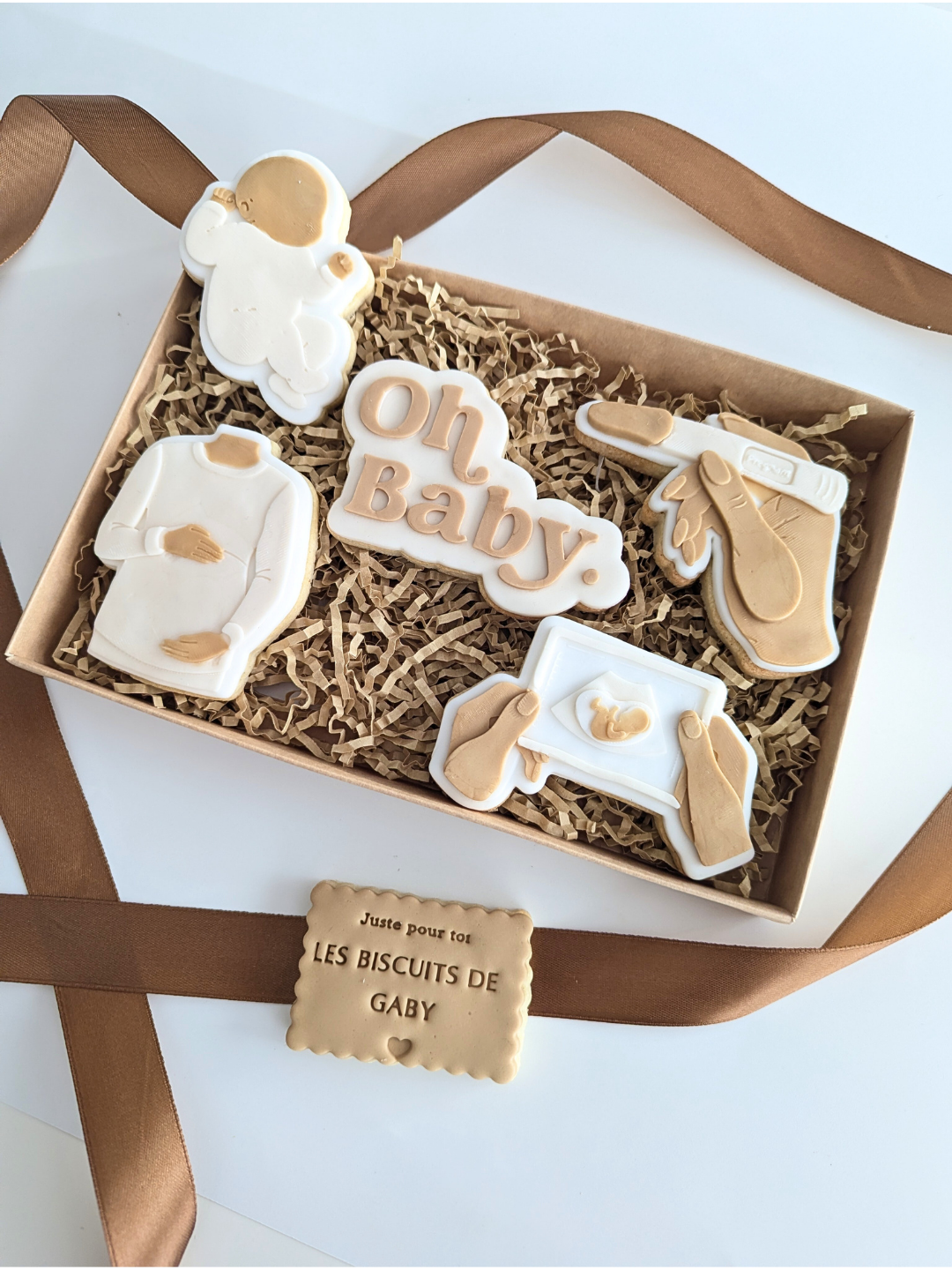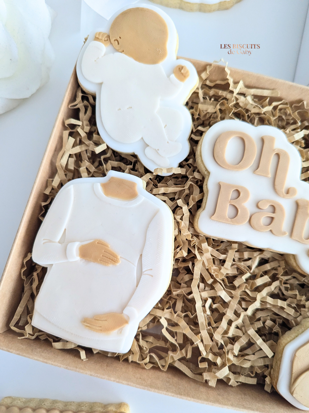 J’ai imaginé ce coffret pour transformer votre annonce de grossesse en un moment de pure douceur. Un cadeau gourmand et original pour surprendre vos proches ou célébrer votre Baby Shower. Le Design : des tons neutres (sable et blanc), élégants et intemporels.